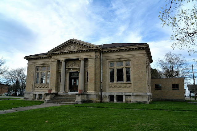 Xenia Carnegie Library, Xenia, Ohio. The library movement in Xenia truly began when eight women who were graduates of Xenia College formed the Tuesday Club on August 20, 1878. The intentions of the club were for members to prepare literary papers and discuss literature, activities that would require access to a library. By 1902, the Young Women’s Library Association had learned about Carnegie’s library building program and decided to apply for a grant. Louisa Lackey and Diana Roberts donated a 200 x 165 foot lot, part of their estate, for the site of the library building. That same year, James Bertram, private secretary to Andrew Carnegie, in a handwritten note, granted the organization $20,000 for a library building. The architect William Kauffman, the nephew of Louisa Lackey and Diana Roberts donated his services in the design of the library. The foundation work on the library began in the fall of 1903, with construction continuing through the following spring. On July 22, 1904, the cornerstone of the library was laid. Construction of the building was completed in 1904, and in June 1905, the ladies requested and were granted an additional $3,500 for library furnishings. The Xenia Carnegie Library’s official public opening occurred on June 26, 1906. The Carnegie building was closed to the public in 1978, when the newer, larger facility opened. There are now plans in turning the old library into a restaurant. The Xenia Carnegie Library is one of 104 Carnegie libraries that were built in Ohio. Architectural Style-Classical Revival. Posted to the National Register of Historic Places on February 25, 2015. GPS: 39.68781°N, -83.92639°W.